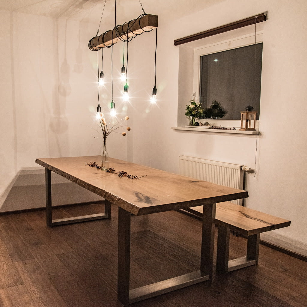 Dieser Kernige Bulle von Kernige Tische ist aus 40mm Eiche Vollholz gefertigt.
